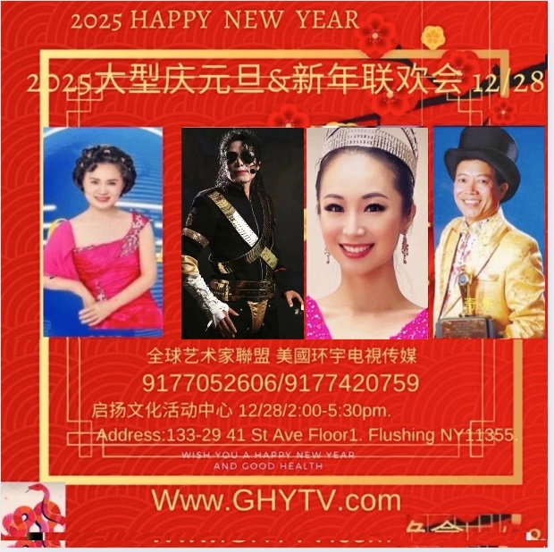 • 美國环宇電視傳媒攜美國全球藝術家联盟拟定2025年12月27日在法拉盛舉辦大型慶新年聯歡會 熱誠歡迎廣告商,贊助商加盟。